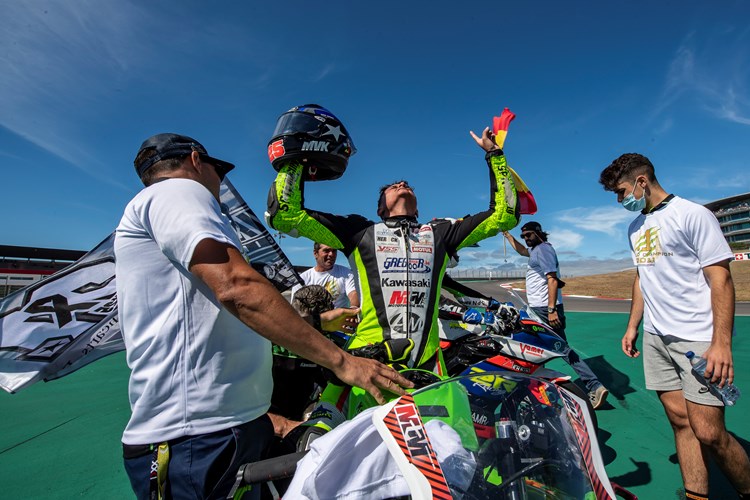 Defeating spirited challenges by an array of fellow Kawasaki competitors, including his own formidable MTM Kawasaki team-mates, Huertas eventually accrued enough points at Portimao to secure his first championship title.