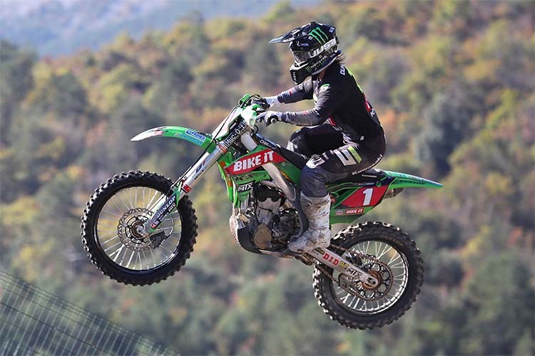 Courtney Duncan and Bike It MTX Kawasaki bravely sealed their third consecutive title in the final round of the FIM World WMX Women’s Motocross Championship at Pietramurata in Trentino today.