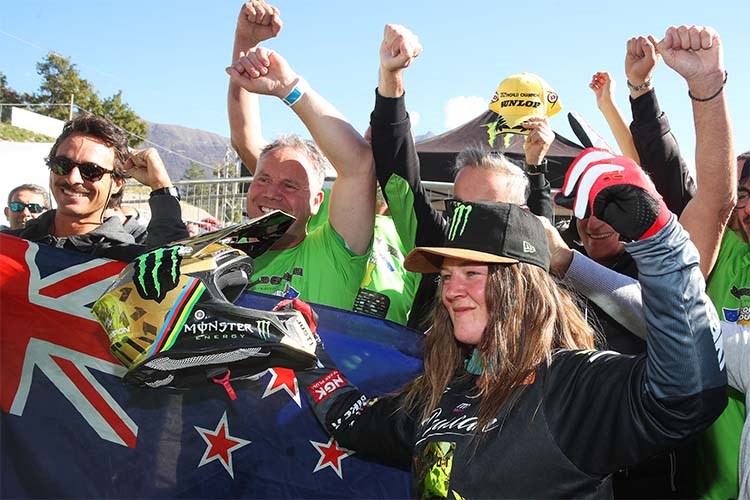The twenty-five-year-old from Dunedin in New Zealand went into the final round holding a sixteen-point lead in the series but she was also carrying a painful injury after suffering a broken finger last weekend in Spain. Gritting her teeth she earnt third-choice of gate during morning Qualifying, just two-thirds of a second off pole, but was pushed wide at the first turn in race one and then got tagged from behind at turn three to lose further ground on the leaders. She remained calm through the always hectic opening lap to settle into an initial eighth place before starting to pick off the girls ahead of her one-by-one. After four laps she was already third and, with her closest rival at the start of the day also encountering misfortune on the opening lap, the successful title defence was looming closer as she set her sights on the remaining challenger in the points chase. Secure in the knowledge that she did not need to risk a pass to secure her three-peat world title she stayed in her rival’s wheel tracks whilst ensuring that there was no renewed threat from behind to take the chequered flag third and set the seal on the individual WMX world title for the third consecutive season. The post-race celebrations could begin but, professional as ever, the world number one and the Bike It MTX Kawasaki team were soon preparing diligently for race two as there was still one more job to be done. And the champion did it in style! Clearly determined to end the season on yet another high Duncan and her KX250 swept through turn one in second place; after a careful opening lap on a track still slippery from pre-race watering she built a stunning pass for the lead already on lap two and raced eight seconds clear for her fifth moto win of the season. This was not quite enough to clinch a fourth overall GP victory from six but, more importantly, it clinched the FIM Manufacturers’ world title for Kawasaki against numerically-superior opposition for the second time in three years.