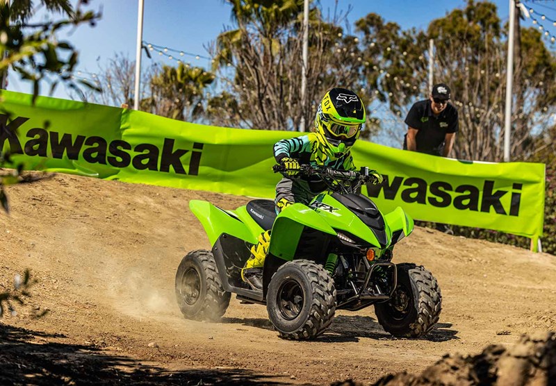 The KFX50 ATV for ages six and older is the starting place for many first-time ATV riders.