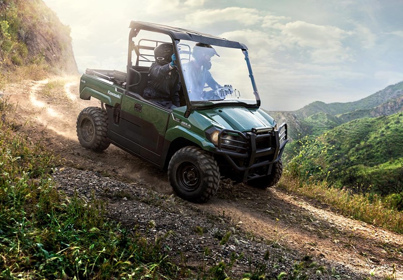 Mid-size Kawasaki MULE PRO-MX side x sides offer a comfortable fit for two passengers with the muscle to cover more ground in less time, and the versatility and capability to have some fun when the work is done.