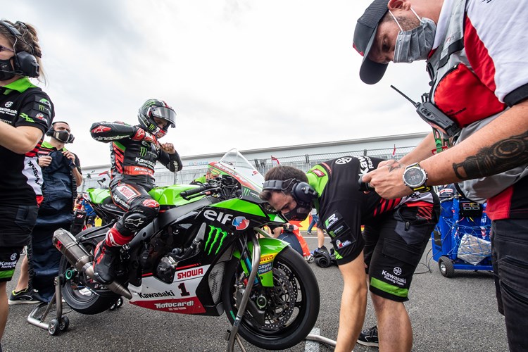 On the slow down lap at the end of Race two Jonathan stopped trackside and his technicians reapplied his famous number 65 to his Ninja ZX-10RR, before he made his way back to the podium ceremony.