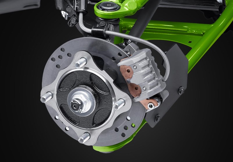 High-performance FOX LSC Piggyback Shocks help improve traction and handling, while dual front disc brakes and a tight turning radius contribute to easy manoeuvrability.