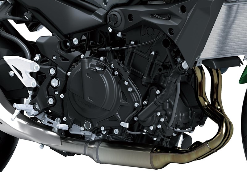 Smooth, powerful acceleration is available with a twist of the wrist from a new 451 cc engine. The acceleration feels brisk thanks to plenty of power in the low- to mid-rpm range, and, when the throttle stays on, enough power in the high-rpm range to hit higher speeds with ease. With well-balanced power output and strong acceleration throughout the rev range, the combination of this engine with a lightweight chassis makes the machine well-suited to a wide variety of riding situations including everyday riding.